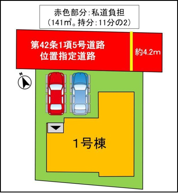 | 接道 | 北 4.2m(幅員) 私道 位置指定有 |